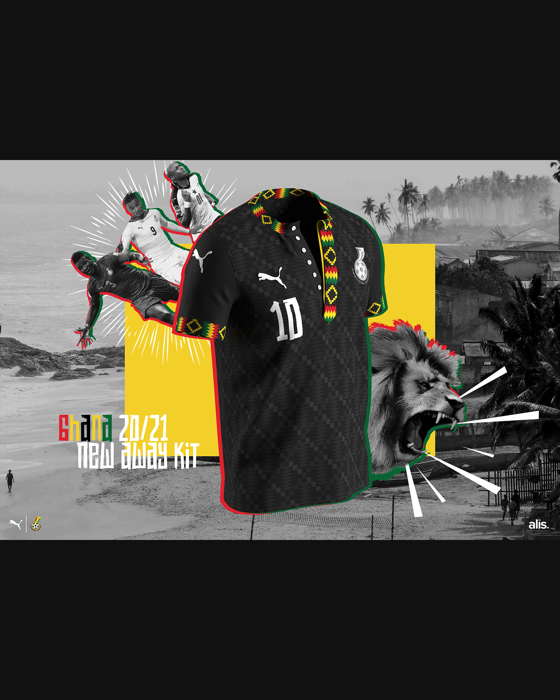A conceptual away kit inspired by Ghanaian culture and traditional Kente cloth. The design translates Kente patterns and colour symbolism into a modern football shirt through custom pattern development, collar detailing, and trim application. The project explores how cultural textiles and identity can be integrated into contemporary sportswear while maintaining performance aesthetics.